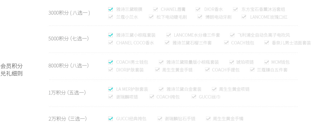 會(huì)員享受積分累積,按積分兌換禮品或項(xiàng)目