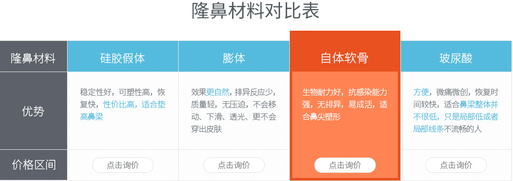 材料選擇:膨體、硅膠、自體軟骨