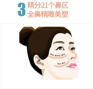 將鼻尖、鼻翼、鼻梁等部位分為21個(gè)精細(xì)單位,術(shù)后鼻部立體感更強(qiáng),精致的同時(shí)更柔和自然。