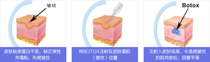 可讓造成皺紋的肌肉放松,使動態(tài)性的皺紋消失。