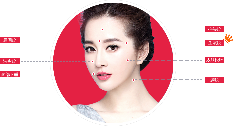 針對額紋、眉間紋、魚尾紋、鼻背部皺紋等動態(tài)皺紋 (肌肉型皺紋)
