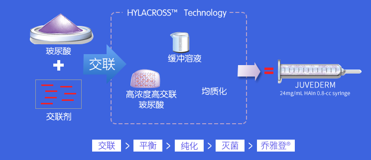 Juvéderm喬雅登是由美國艾爾建公司制造的一款透明質(zhì)酸注射凝膠,采用的HYLACROSS?專利技術(shù)制造,具有柔順平滑均質(zhì)的特點,可達到填充皮膚容積、改善面部皺紋的功效,讓您在注射后感受到年輕自然的樣貌。