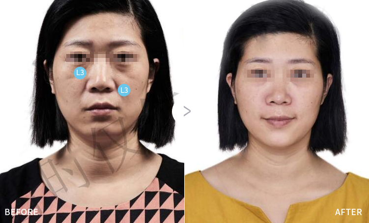 將喬雅登注射于L3點位,支撐深層結(jié)構(gòu),讓注射部位更充盈,同時較好的改善和柔化淚溝。