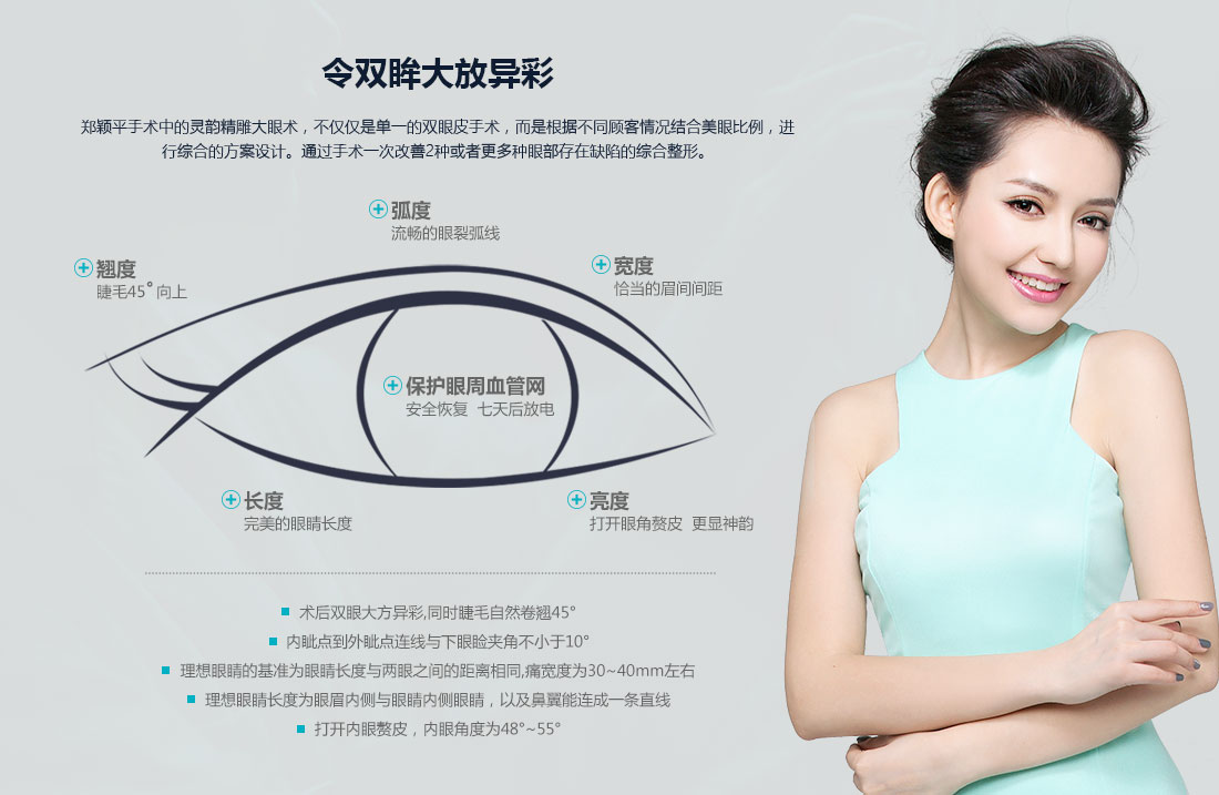 術(shù)前設(shè)計絕不能僅僅依賴于一些美學(xué)標(biāo)準(zhǔn)數(shù)據(jù)的測試,要注重個性化調(diào)節(jié),對眼形、眼眶、睫毛、臥蠶、鼻型、眉目等綜合考慮設(shè)計。各種美眼各有特色,只有配在對應(yīng)氣質(zhì)的面孔上才能令人賞心悅目。綜合眼整形才是較好解決途徑。而且雙眼皮手術(shù)一定要搭配眼周一起做,這樣才能更好達(dá)到創(chuàng)造眼部風(fēng)情的效果。
