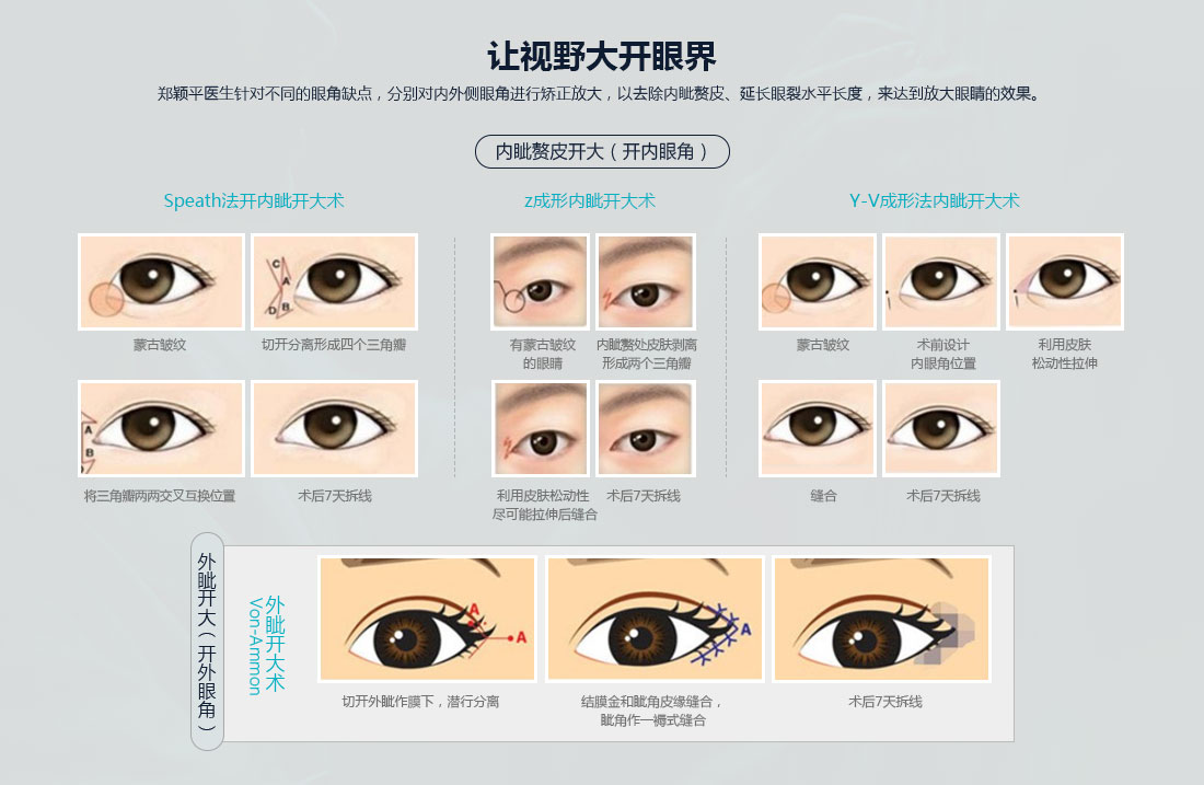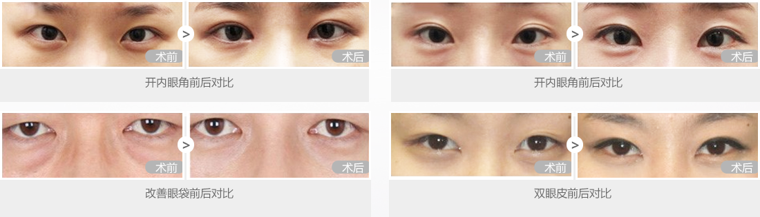 重瞼、內(nèi)外眥開大、祛眼袋、淚溝填充、眼部年輕化等
